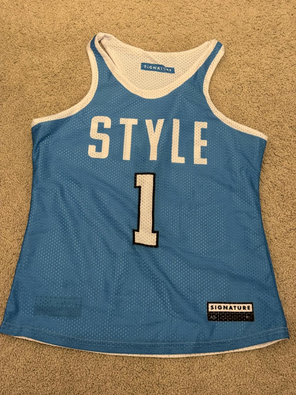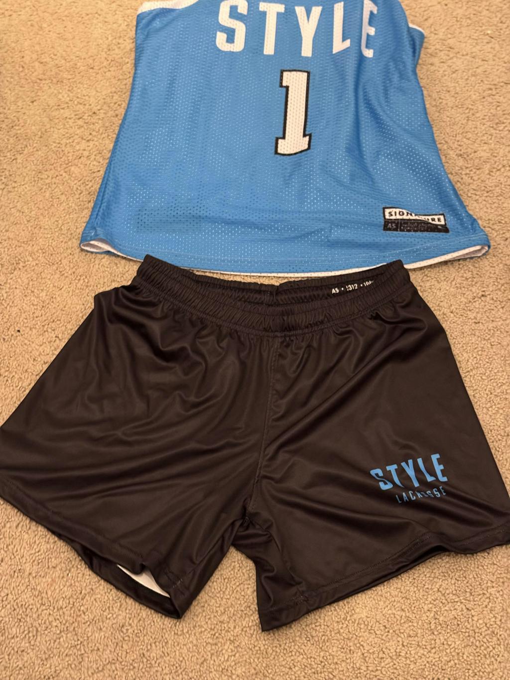 The practice pinnie is cut awkwardly around the armholes and chest. The shorts are extremely large and long, reaching to the knees. They are unwearable.